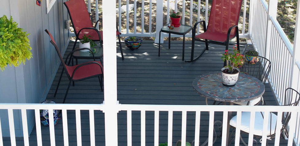 Large 10x15 wrap around front porch with ceiling fan and custom steps