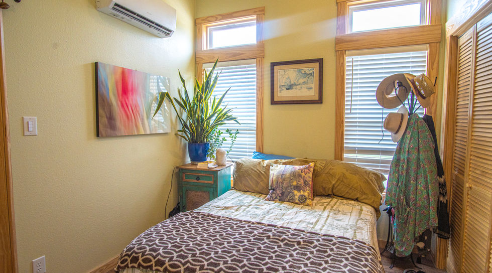 Here is a cute Hummingbird with a shed roof by Platinum. This client definitely opted for some custom features! What is not to like about a Fire Place, gas drop in stove, bedroom closets w/ washer/dryer behind adorable barn doors and bold blue exterior!